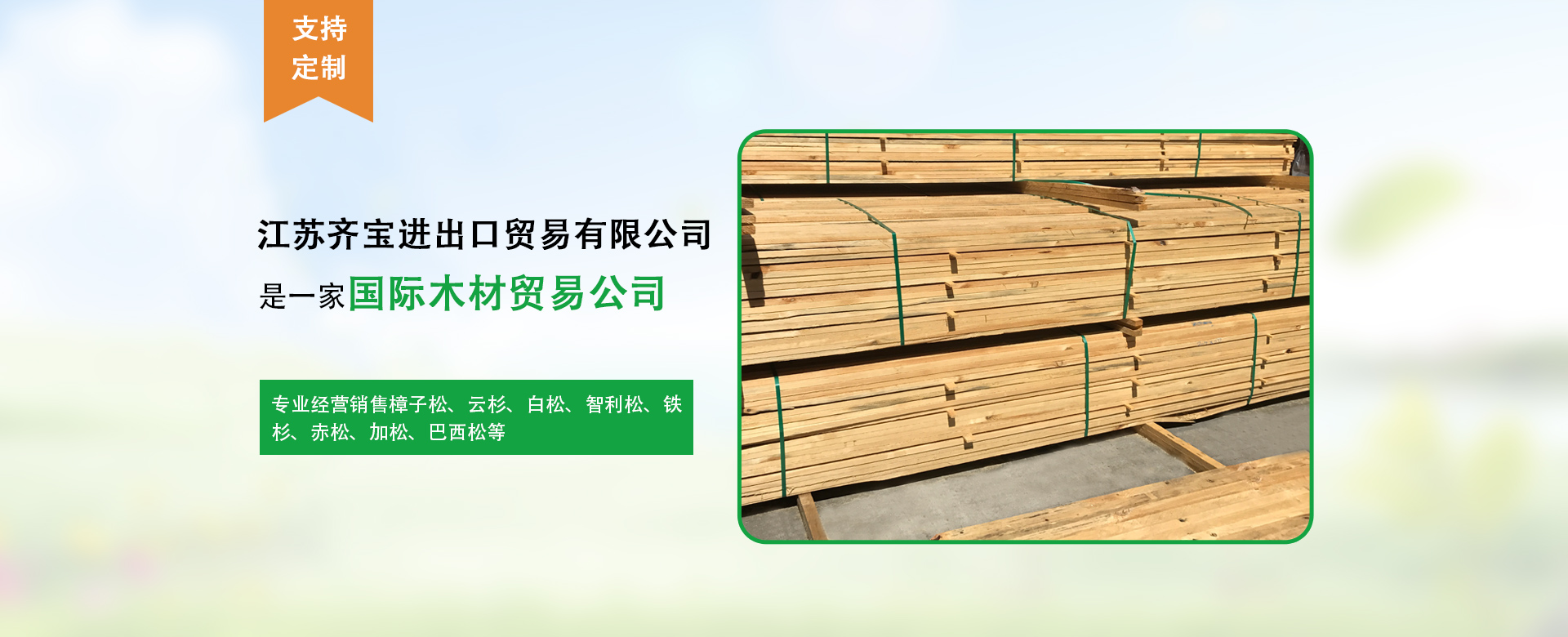 江蘇齊寶進(jìn)出口貿(mào)易有限公司是成立于2011年位于太倉(cāng)港區(qū)的一家國(guó)際木材貿(mào)易公司,專(zhuān)業(yè)經(jīng)營(yíng)銷(xiāo)售樟子松,云杉,白松,智利松,鐵杉,赤松,加松,巴西松等,目前我公司進(jìn)貨量約200000m3/年...